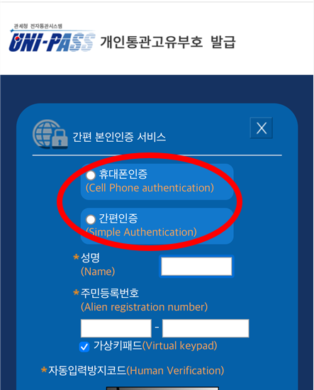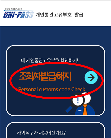 "개인통관고유부호발급"은 간단한 본인인증 후 이용 가능 합니다.